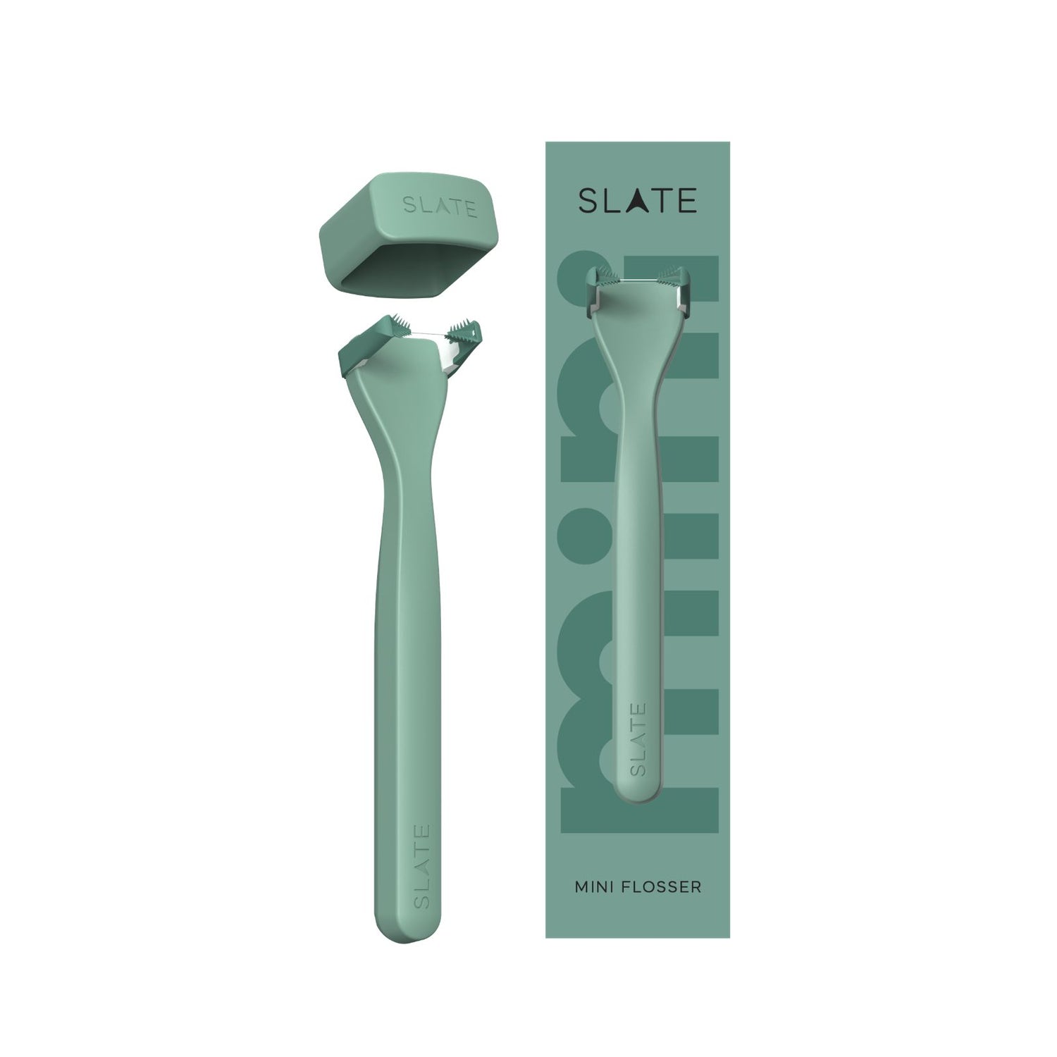 Brushing only cleans about 60% of your mouth. Slate Mini is designed to help clean the rest. This reusable 3-in-1 flosser combines woven floss, gum brushes, and a built-in tongue scraper to help clean between teeth, massage along the gumline, and freshen your whole mouth in one simple routine.