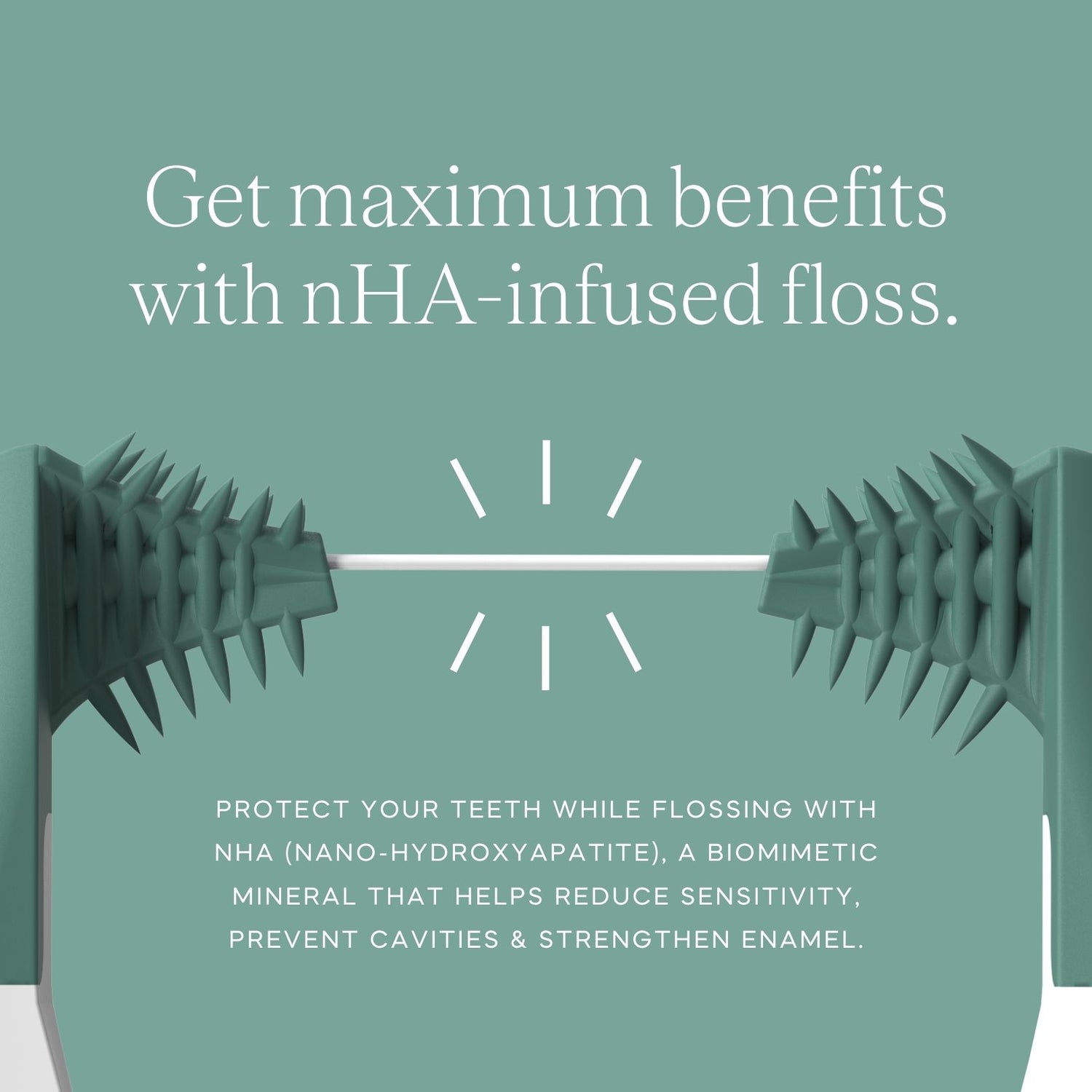 Get the benefits of nano Hydroxyapatite (nHA) infused in a Thin woven floss, plus a refreshing natural mint flavor. Designed to clean effectively while supporting enamel and leaving your mouth feeling fresh.