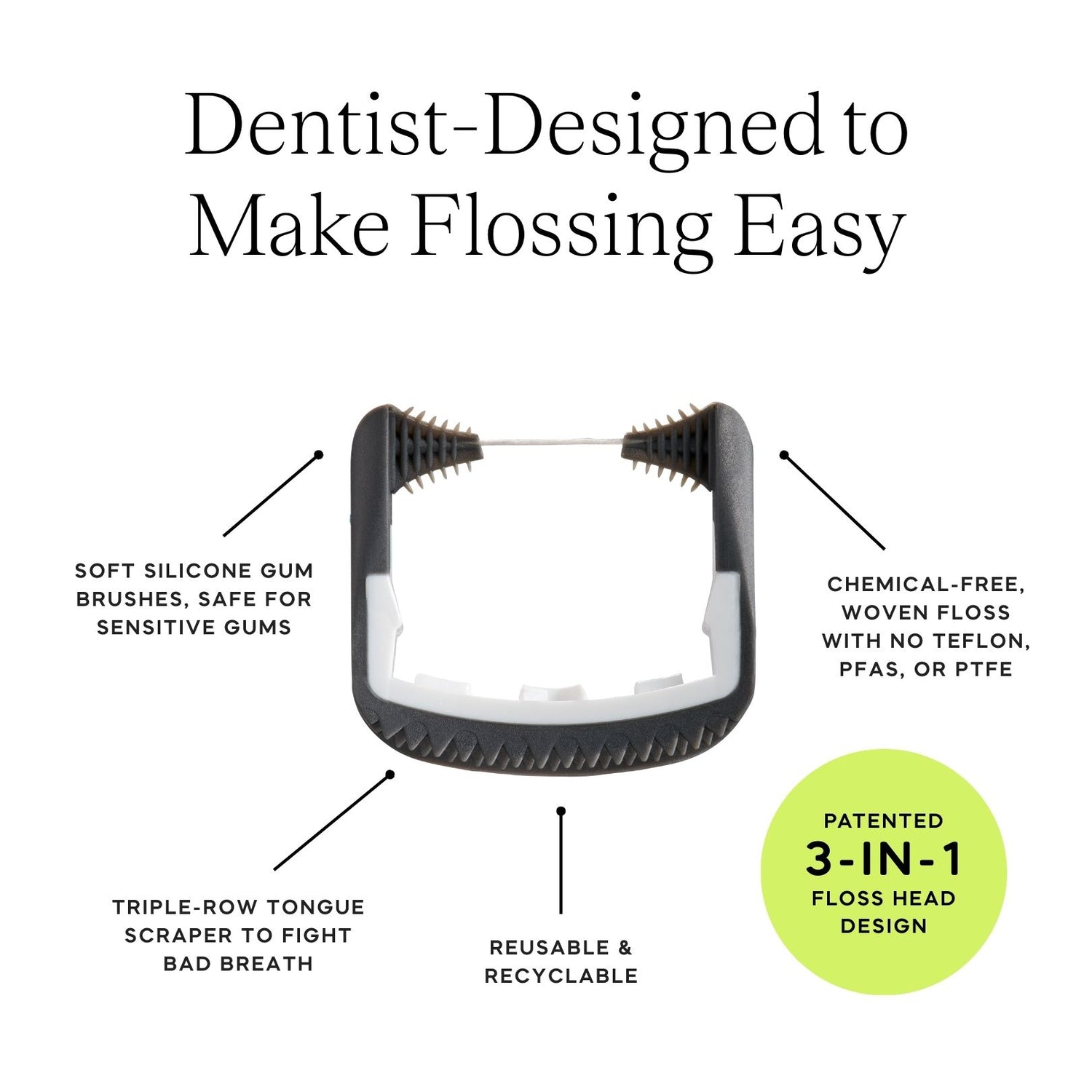 Our Woven Floss features a remarkable 450 strands that are NON-TOXIC and do not contain Teflon, PTFEs or PFAS! Our floss heads are proven to stand the test of time. We recommend changing your floss head once a week, depending on tooth contact tightness and tooth or filling conditions. For optimal results, weekly replacement is ideal.