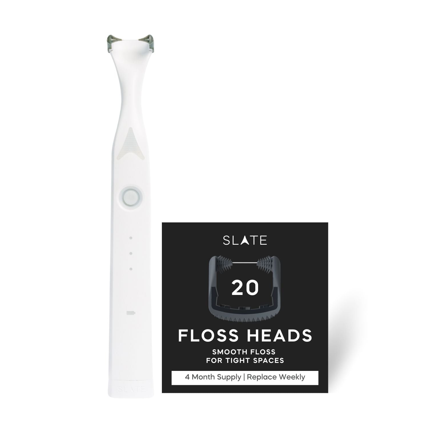 Brushing only cleans about 60% of your mouth. Slate finishes the job with non-toxic woven floss, silicone gum brushes, and a triple-row tongue scraper for a 100% clean.