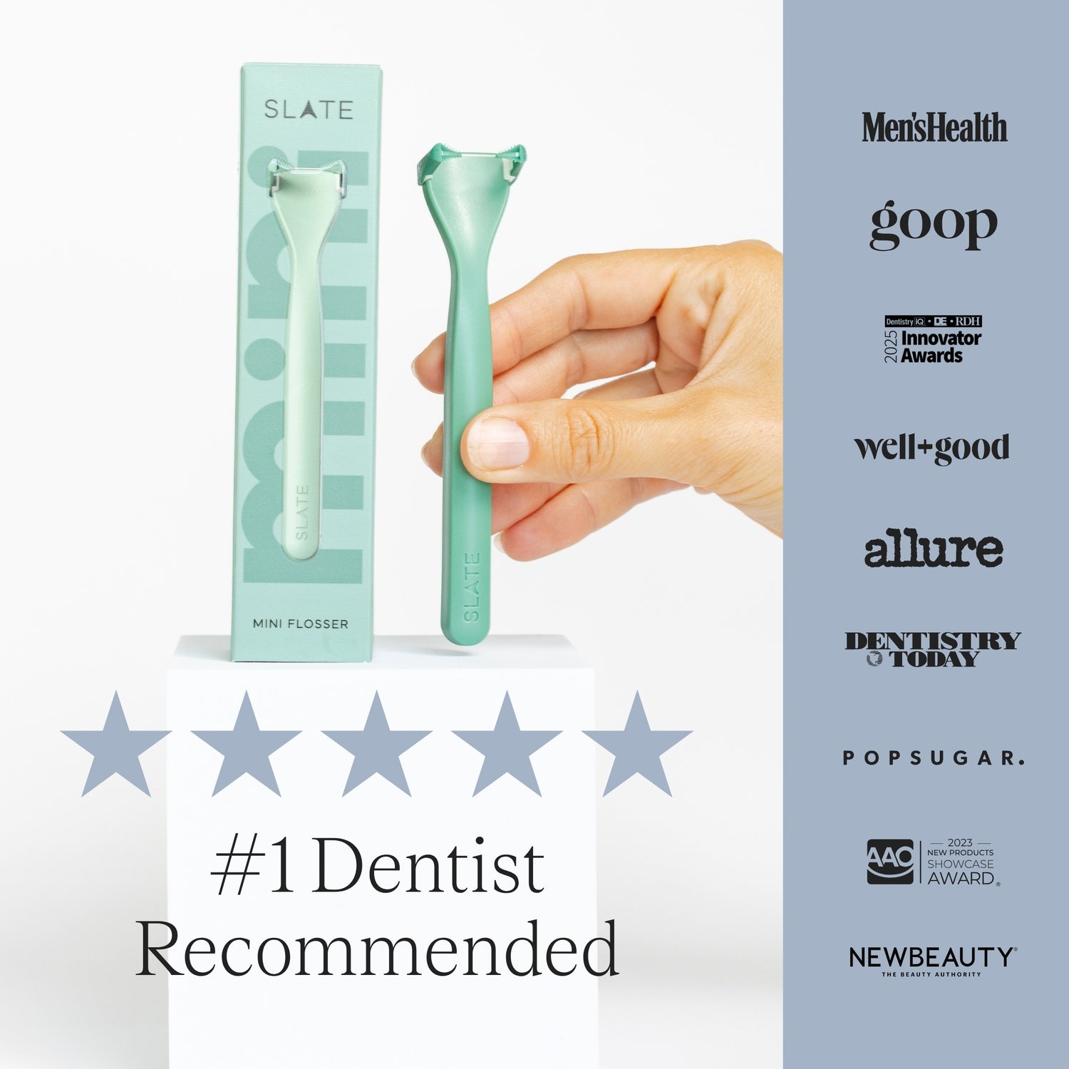 Ditch wasteful plastic floss picks and use Slate's Mini Manual Flosser instead!