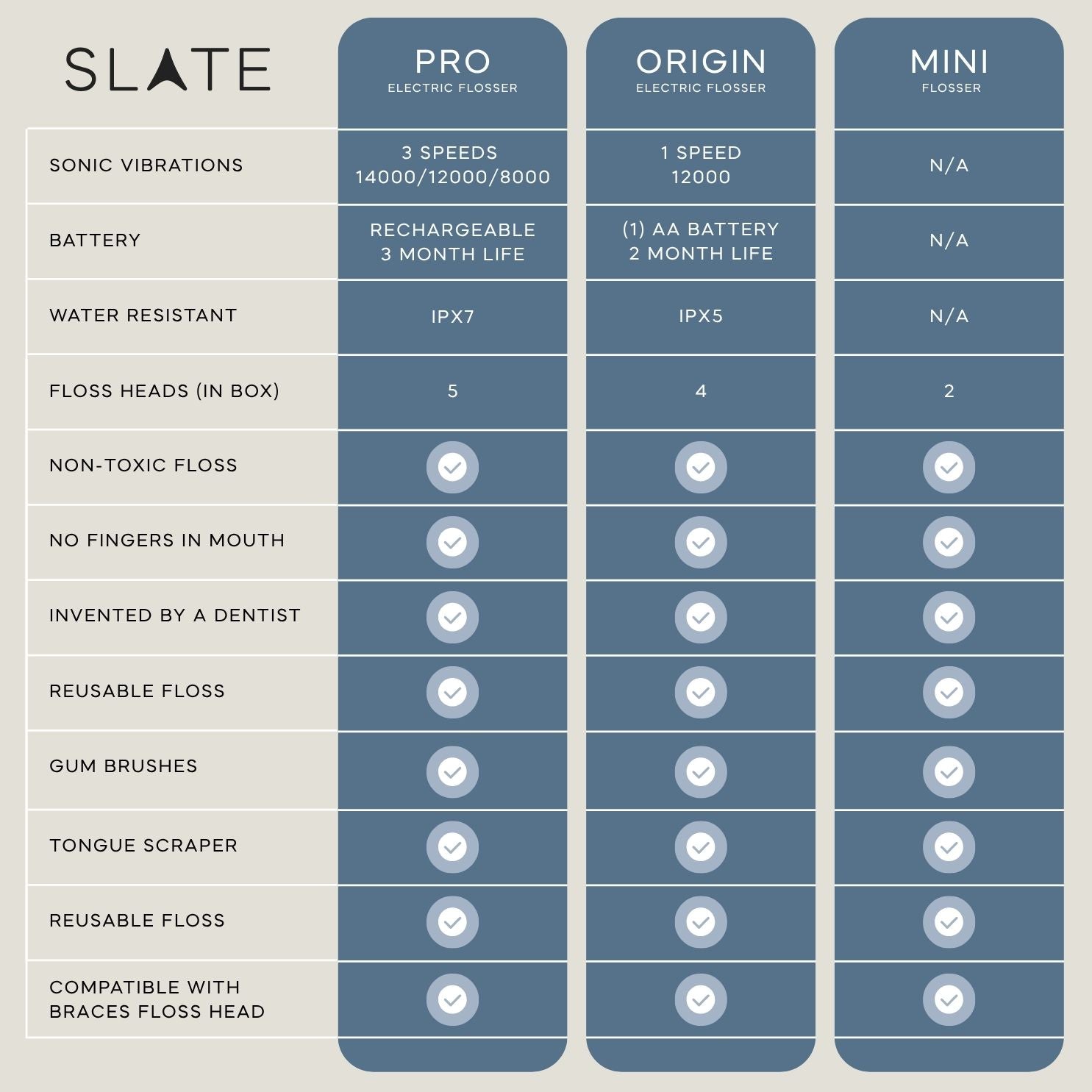 Origin is a great choice for anyone who wants a slimmer, simpler electric flosser without giving up the clean Slate is known for. It’s especially great for travel, first-time electric flosser users, kids, and anyone who wants an easier way to build a daily flossing habit.