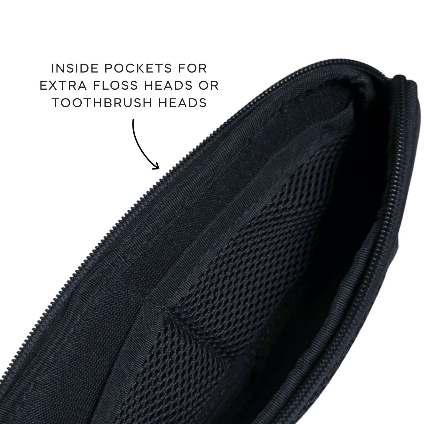 All your oral care, finally in one place. This zippered case fits your Slate Flosser plus a toothbrush, toothpaste, extra floss heads, and more, with mesh pockets to keep everything organized and protected in your bag. Toss it in your carry-on, gym bag, or car and you’re ready to freshen up anywhere.